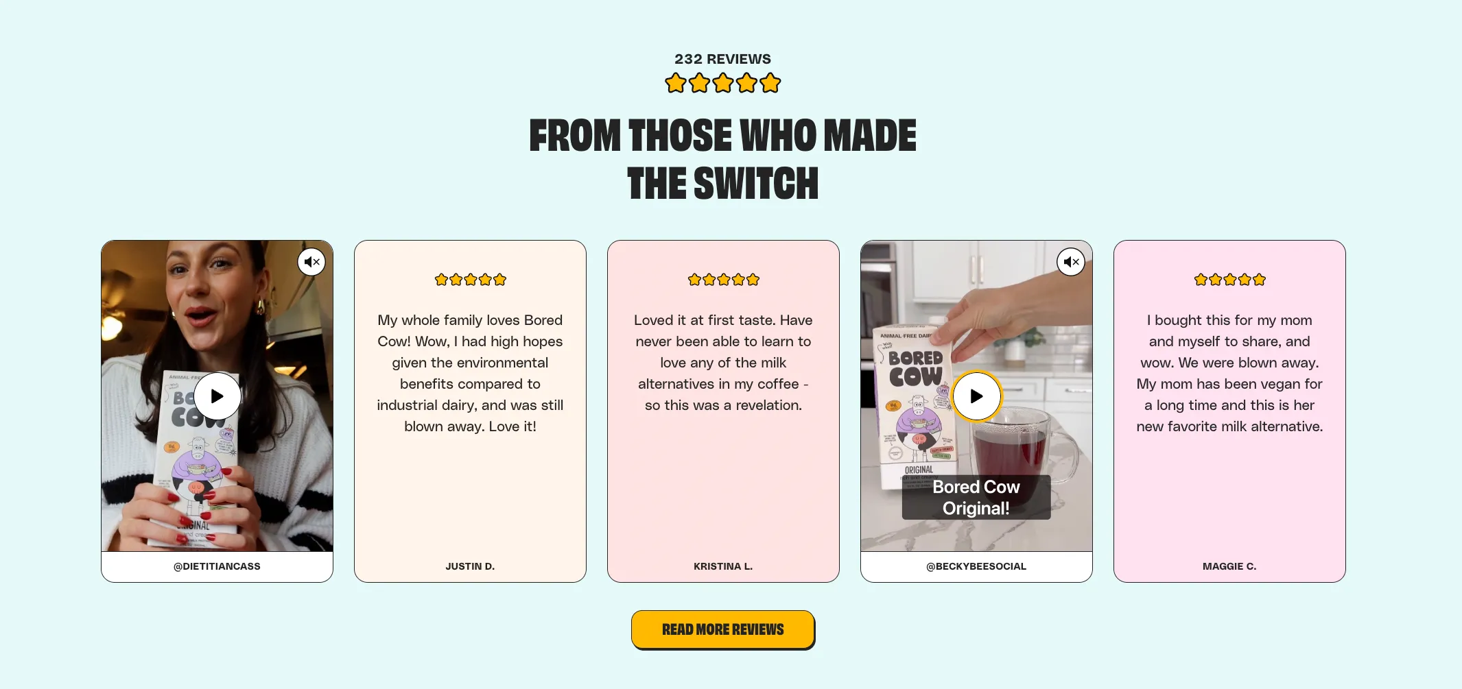 You can even make this gallery shoppable, allowing visitors to click through to specific product pages while browsing through customer content. The gallery can include everything from product reviews to full-length testimonials, behind-the-scenes looks, and unboxing videos. The more diverse the content, the more you’ll appeal to different kinds of shoppers.