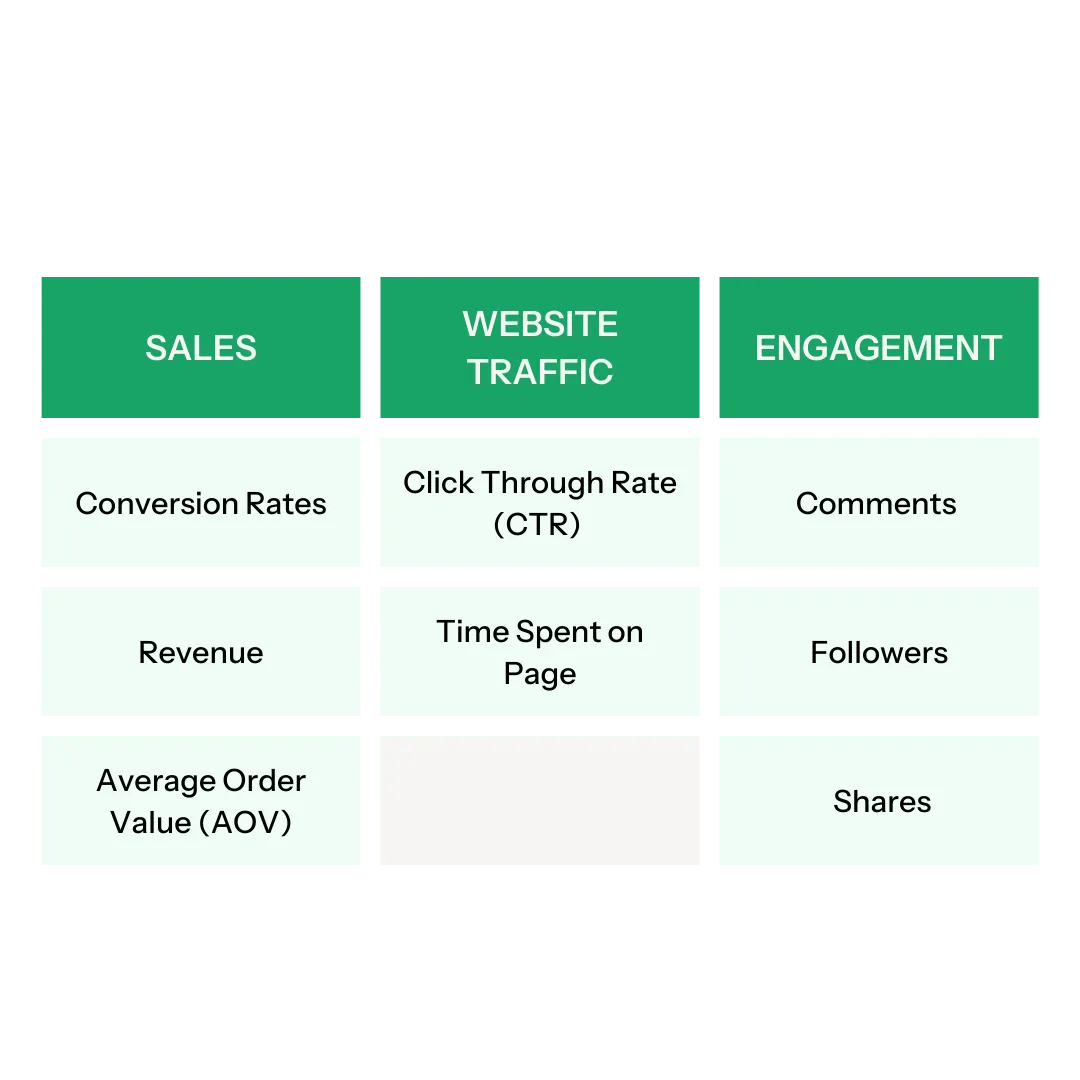 Before starting any campaign, it’s important to know what you’re measuring. Are you focused on increasing sales? Driving more traffic to your website? Building your brand’s social media following? Having clear objectives will guide how you measure the return on your investment.