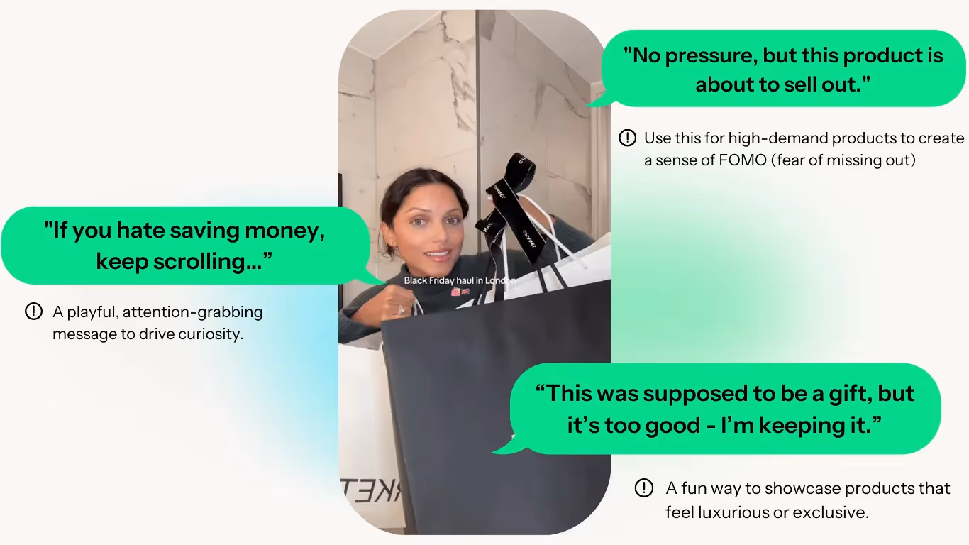 When it comes to Black Friday, fresh and unique hooks can make all the difference. Here are a few hook ideas that will guarantee grab your audiences attention: