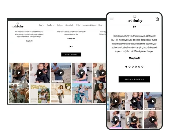Tushbaby, offering baby-carrying solutions, recognized the importance of shoppable UGC videos featuring satisfied customers as a valuable resource.