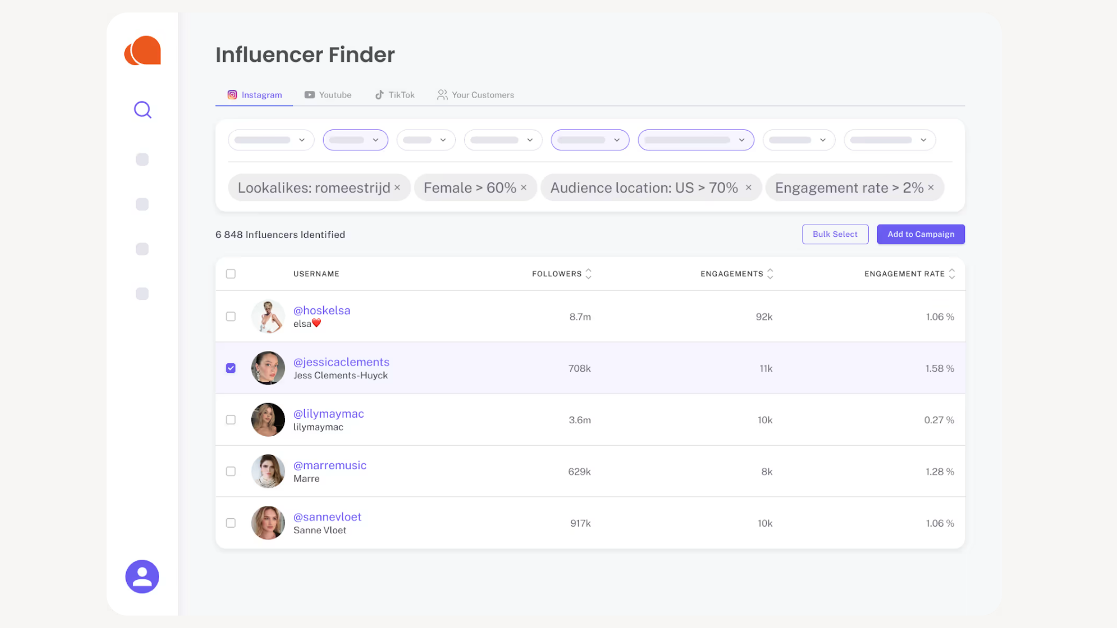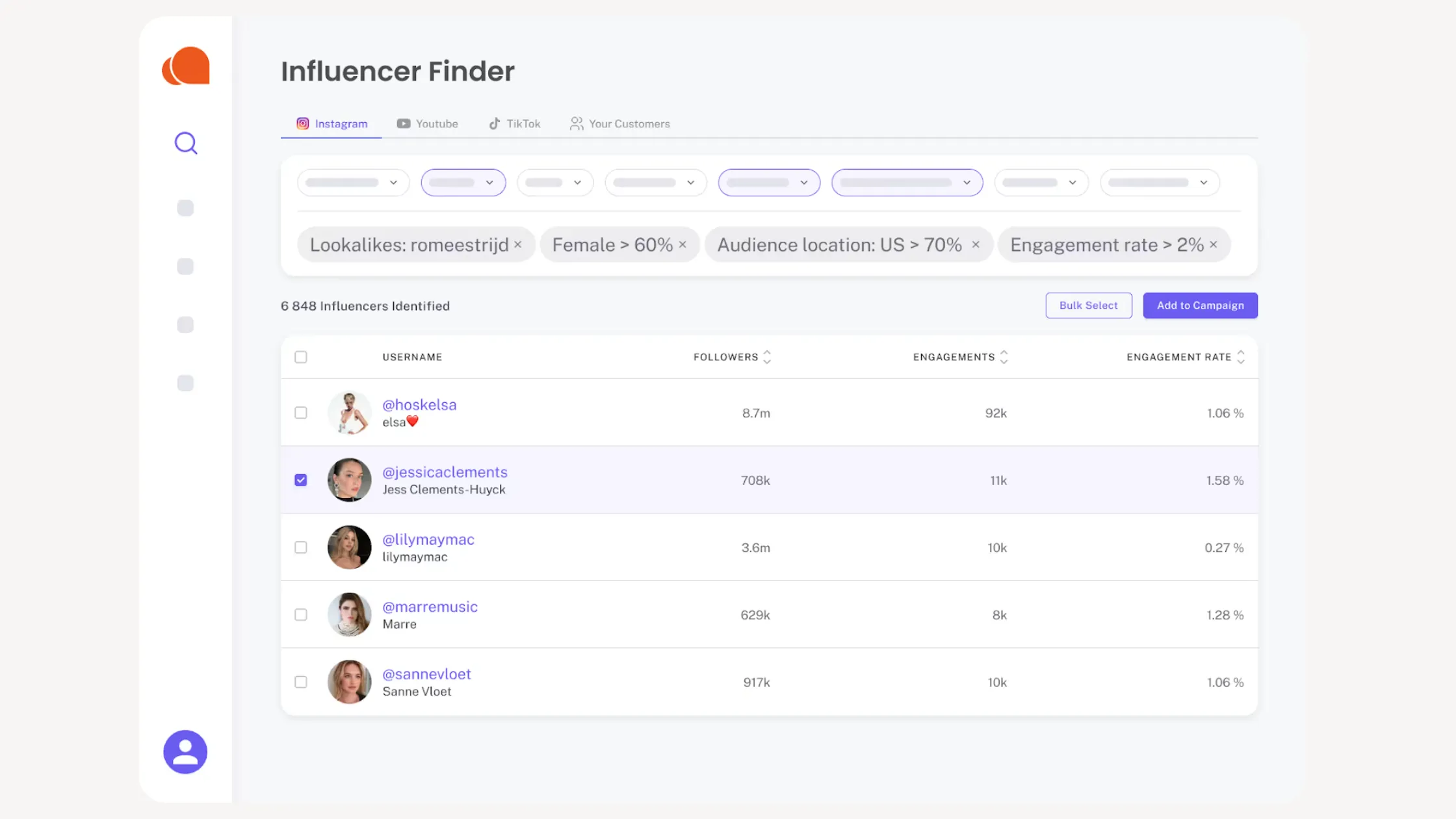 One of the most effective ways to discover creators is by using an influencer marketing platform. These tools allow brands to search large creator databases using advanced filters, making it easier to identify influencers who match specific niches, audiences, and campaign goals, without relying on manual research.